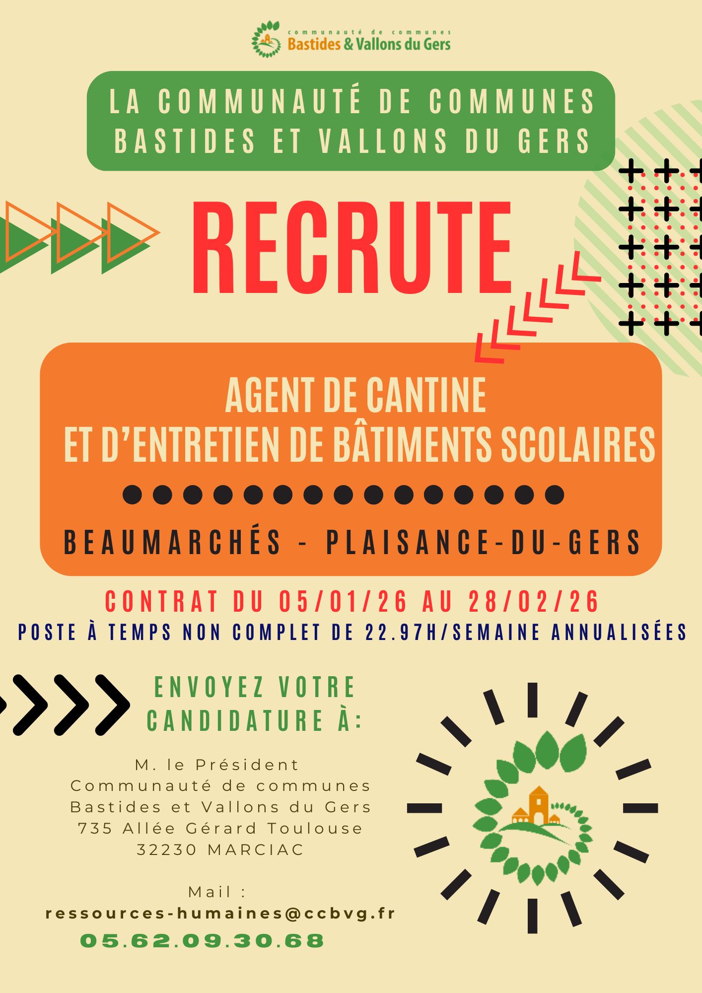 La communauté de communes recrute un Agent Territorial Spécialisé des Ecoles Maternelles et Agent d’Animation