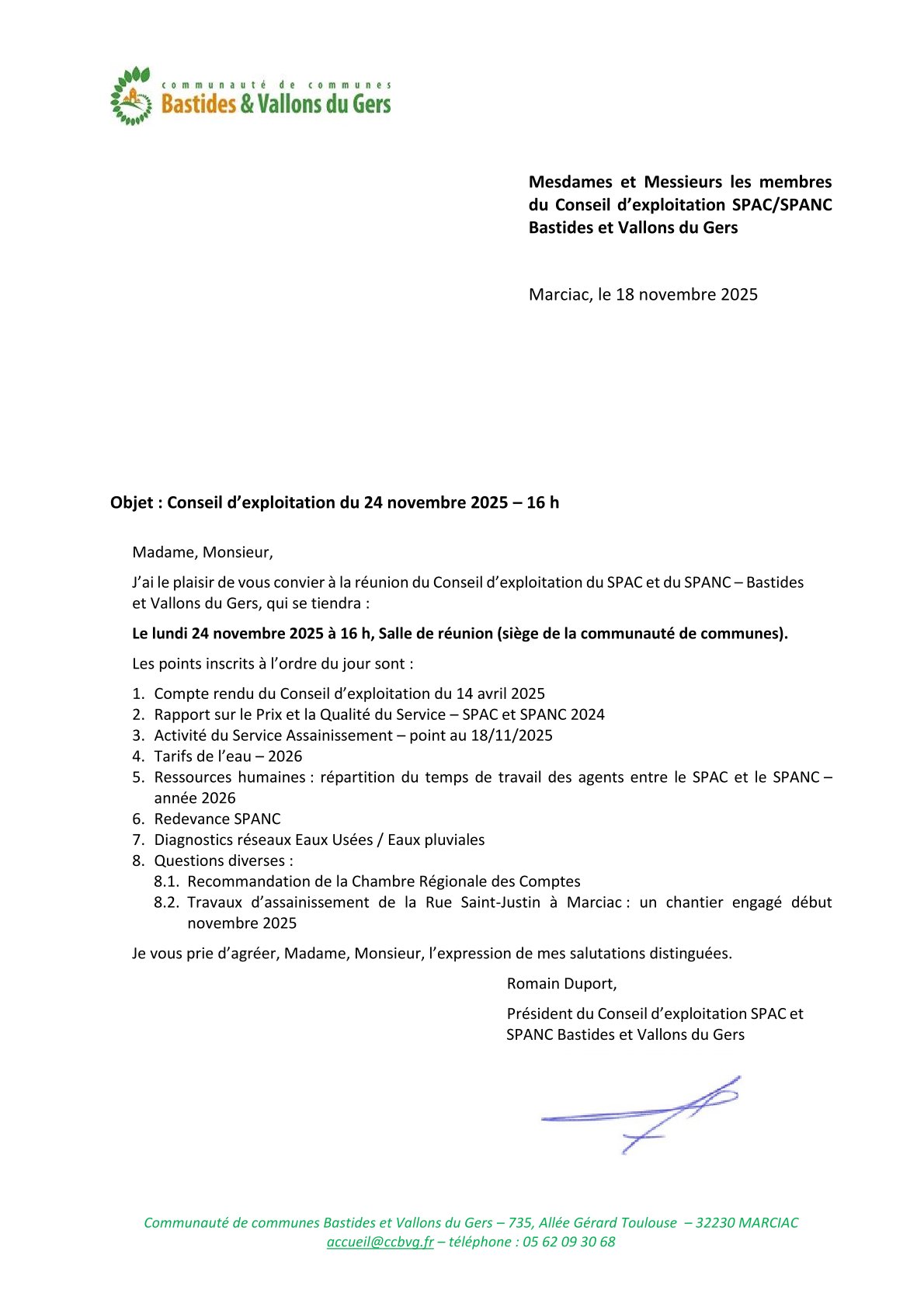 Actualités Les dernières actus de la CCBVG 26 novembre 2025 by CCBVG La Communauté de Communes Bastides et Vallons du Gers recrute un ou une responsable du service des… 25 novembre 2025 by CCBVG Journée internationale des personnes en situation de handicap 2025 : 3 journées… 25 novembre 2025 by CCBVG Journée Nationale des Assistantes… 23 novembre 2025 by CCBVG Médiathèques Christian Bobin et Jean-Louis Quéreillahc : horaires et fiches… 19 novembre 2025 by CCBVG Invitation au Conseil d’exploitation du SPAC et du SPANC le 24 novembre… 17 novembre 2025 by CCBVG La médiathèque intercommunale de Plaisance devient la médiathèque Jea-Louis Quéreillahc le 22 novembre… 7 novembre 2025 by CCBVG Consultations médicales sur rendez-vous tous les 1er mardi et mercredi de chaque… 4 novembre 2025 by CCBVG La communauté de communes recrute un agent de cantine et d’entretien des bâtiments… 4 novembre 2025 by CCBVG La communauté de communes recrute un Agent Territorial Spécialisé des Ecoles Maternelles et Agent… 30 octobre 2025 by CCBVG Ateliers numériques : les rendez-vous de la médiathèque de… 29 octobre 2025 by CCBVG Mercredis de novembre à décembre à l’ALSH de Plaisance : le… 29 octobre 2025 by CCBVG A l’attention des entreprises installées dans la Communauté de Communes Bastides et Vallons du… 29 octobre 2025 by CCBVG Mercredis de l’ALSH de Marciac : programme de novembre à… 29 octobre 2025 by CCBVG Consultations médicales les 4 et 5 novembre à la Maison de Santé de… 22 octobre 2025 by CCBVG Fermeture exceptionnelle du siège de la communauté de… 17 octobre 2025 by CCBVG Les droits de succession : atelier jeudi 16 octobre 2025 de 14h à… 17 octobre 2025 by CCBVG Vacances d’automne à l’Espace Jeunes de… 30 septembre 2025 by CCBVG Enquête publique : donnez votre avis sur le… 30 septembre 2025 by CCBVG Avis d’enquête publique… 29 septembre 2025 by CCBVG Ateliers de sécurité routière pour les seniors : les dates de… 25 septembre 2025 by CCBVG Point Accueil Transmission Agricole : rendez-vous à la Communauté de Communes le 16 octobre… 19 septembre 2025 by CCBVG Programme des vacances d’automne 2025-2026 à… 19 septembre 2025 by CCBVG Programme des vacances d’automne 2025-2026 au Centre Vives de… 19 septembre 2025 by CCBVG Le 20 septembre 2025, la médiathèque intercommunale de Marciac devient la médiathèque Christian… 3 septembre 2025 by CCBVG Atelier sécurité routière pour les seniors : les dates de… 2 septembre 2025 by CCBVG Révision du SCoT (Schéma de cohérence territoriale) : invitation aux réunions… 1 septembre 2025 by CCBVG Les mercredis de l’ALSH de Plaisance : programme de septembre à… 1 septembre 2025 by CCBVG Les mercredis de l’ALSH de Marciac : programme de septembre à… 29 août 2025 by CCBVG « A petits pas », Lieu d’Accueil Enfants Parents : les rendez-vous de septembre à… 26 août 2025 by CCBVG Arrêté portant sur la mise à l’enquête publique du projet de PLUi et de l’abrogation des cartes… 22 juillet 2025 by CCBVG Article La Dépêche : une journée conviviale pour l’ouverture de la saison… 24 juin 2025 by CCBVG Bulletin semestriel du mois de juin… 19 juin 2025 by CCBVG Conseil communautaire du 23 juin… 16 juin 2025 by CCBVG Habitat inclusif : troisième réunion d’information à… 21 mai 2025 by CCBVG Invitation au Conseil… 21 mai 2025 by CCBVG Article La Dépêche : rencontre intergénérationnelle aux Mille… 21 mai 2025 by CCBVG Article La Dépêche : le séjour des ados à… 2 mai 2025 by CCBVG Moustique… 25 avril 2025 by CCBVG Chambre des Métiers et de… 16 avril 2025 by CCBVG OFFRE D’EMPLOI… 4 avril 2025 by CCBVG Convocation au Conseil d’exploitation du 14 avril… 4 avril 2025 by CCBVG Convocation conseil communautaire du 14 avril 2025-… 4 avril 2025 by CCBVG Convocation conseil communautaire du 14 avril 2025-… 26 mars 2025 by CCBVG Invitation au Conseil d’administration du… 26 mars 2025 by CCBVG Dispositif d’évaluation financière… 14 mars 2025 by CCBVG Rencontre santé Mutualité… 14 mars 2025 by CCBVG Dépistage… 14 mars 2025 by CCBVG Permanences France Rénov’ à… 25 février 2025 by CCBVG Permanences France… 17 février 2025 by CCBVG Réunion publique… 5 février 2025 by CCBVG Questionnaires… 3 février 2025 by CCBVG Inscriptions… 3 février 2025 by CCBVG Horaires d’ouverture – Médiathèque… 31 janvier 2025 by CCBVG … 30 janvier 2025 by CCBVG Retour sur la Journée Internationale du… 15 janvier 2025 by CCBVG LAEP Lieu d’Accueil Enfants… 18 décembre 2024 by CCBVG Fonds pour le développement de la Vie… 18 décembre 2024 by CCBVG Bulletin… 10 décembre 2024 by CCBVG Procédure d’accueil des… 5 décembre 2024 by CCBVG Rapport d’activité… 5 décembre 2024 by CCBVG Fin du porte à… 4 décembre 2024 by CCBVG Révision du… 6 novembre 2024 by CCBVG Délibération de révision du… 30 août 2024 by CCBVG Autres… 12 août 2024 by CCBVG article « La Dépêche du midi du 10 août… 13 mai 2024 by CCBVG PEDT – Projet Educatif de Territoire… 14 mars 2024 by CCBVG Rapport de la Cour des Comptes… 25 janvier 2024 by CCBVG Portraits socio-économiques des… 26 octobre 2023 by CCBVG Conseil communautaire… 23 juin 2023 by CCBVG Espace Jeunes de… 20 juin 2023 by CCBVG Permanence PAVA – Mairie de… 21 mars 2022 by CCBVG PLUI – Registre…
